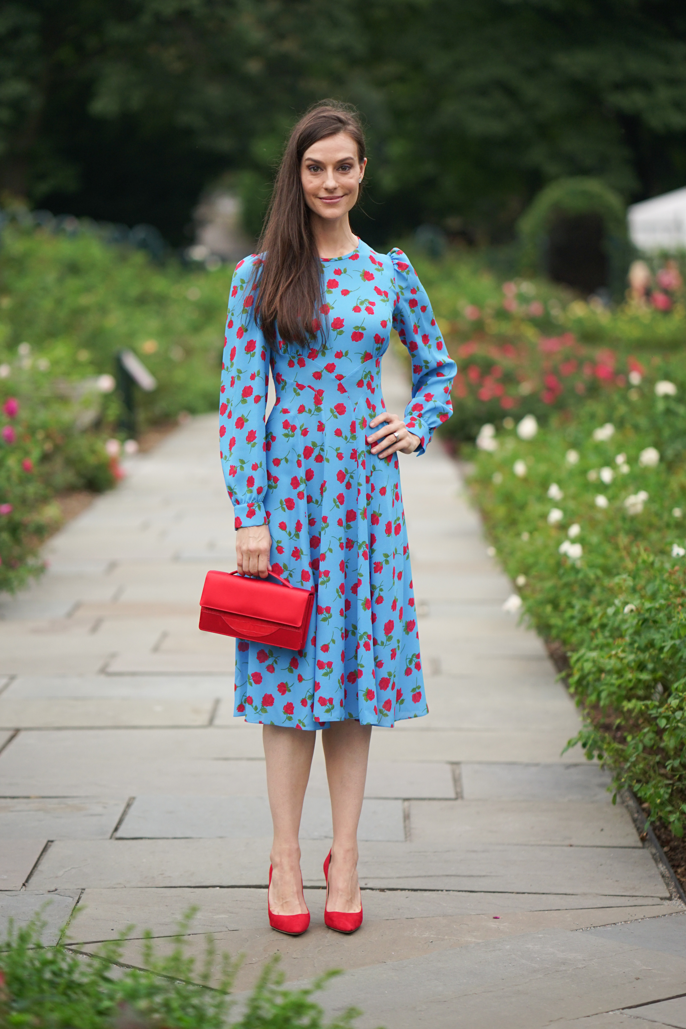 The evening’s guests included Ariana Rockefeller, who wore a lovely theme-appropriate rose patterned dress and rose colored heels while exploring the rose garden named after her grandmother.