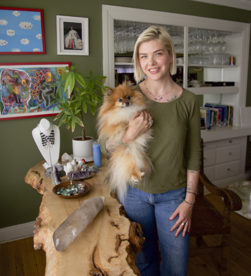 “In rituals, my role is more of a facilitator,” says Holm, who publishes new moon and full moon rituals on her website. “I also on occasion will lead people through rituals,” she adds, speaking of what appears to be a culture-wide interest in intuitive healing in the modern era. “We did a really big one right after the election. [Sighs.] People were like, ‘What can we do? How can we raise the vibration and pick ourselves up out of this?’– so we did a big event with a ritual and guided meditation with a live score. It was really beautiful.”