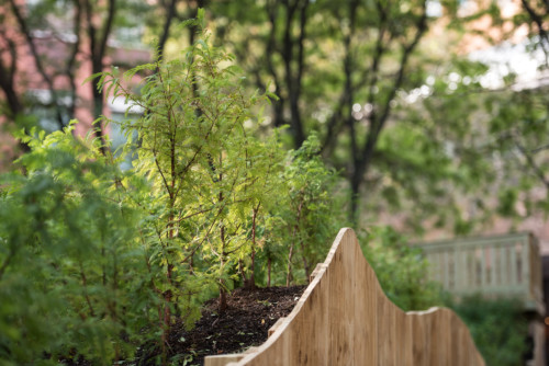 Of course, a forest doesn’t blend seamlessly into Downtown Brooklyn. “A miniature forest is something that you would never expect to see in this very bustling, busy downtown Brooklyn square,” Enderby says. “By creating something that is out of place and somewhat strange– something that you wouldn’t usually come across– I think that we are able to spark conversation.”