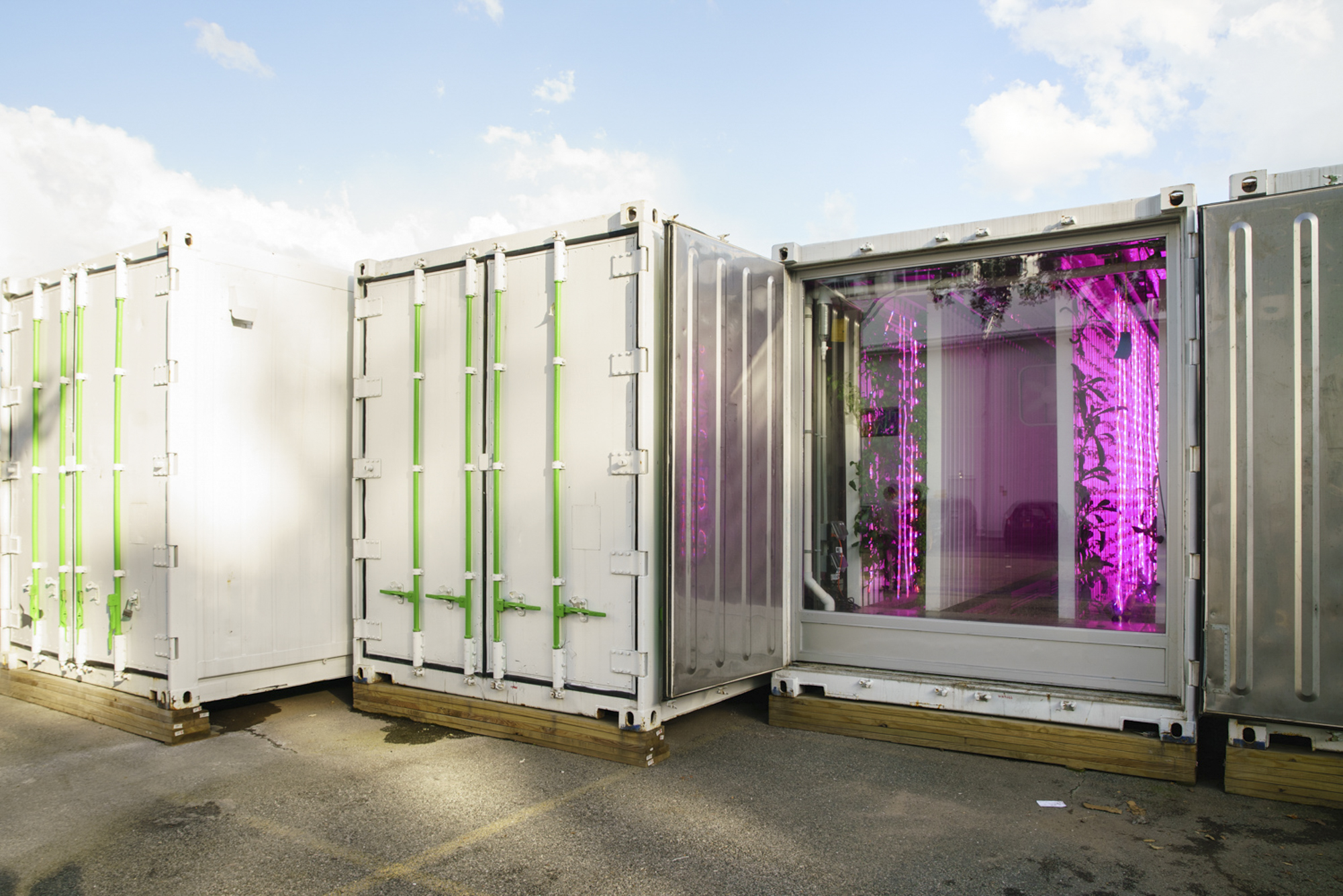 Square Roots in Brooklyn is the latest startup to embrace hydroponics as a solution to feed the planet. Operating out of an old Pfizer plant in Brooklyn– a choice symbolic of their desire to end the current petrochemical agricultural system– they are trying to bridge the gap between radical Silicon Valley-style disruption and everyday agriculture. Square Roots uses old shipping containers retrofitted with LED lights, irrigation systems, and racks for the plants. Using these elements as building blocks, the Square Roots team is thinking ahead, and imagining a radically different farm landscape.