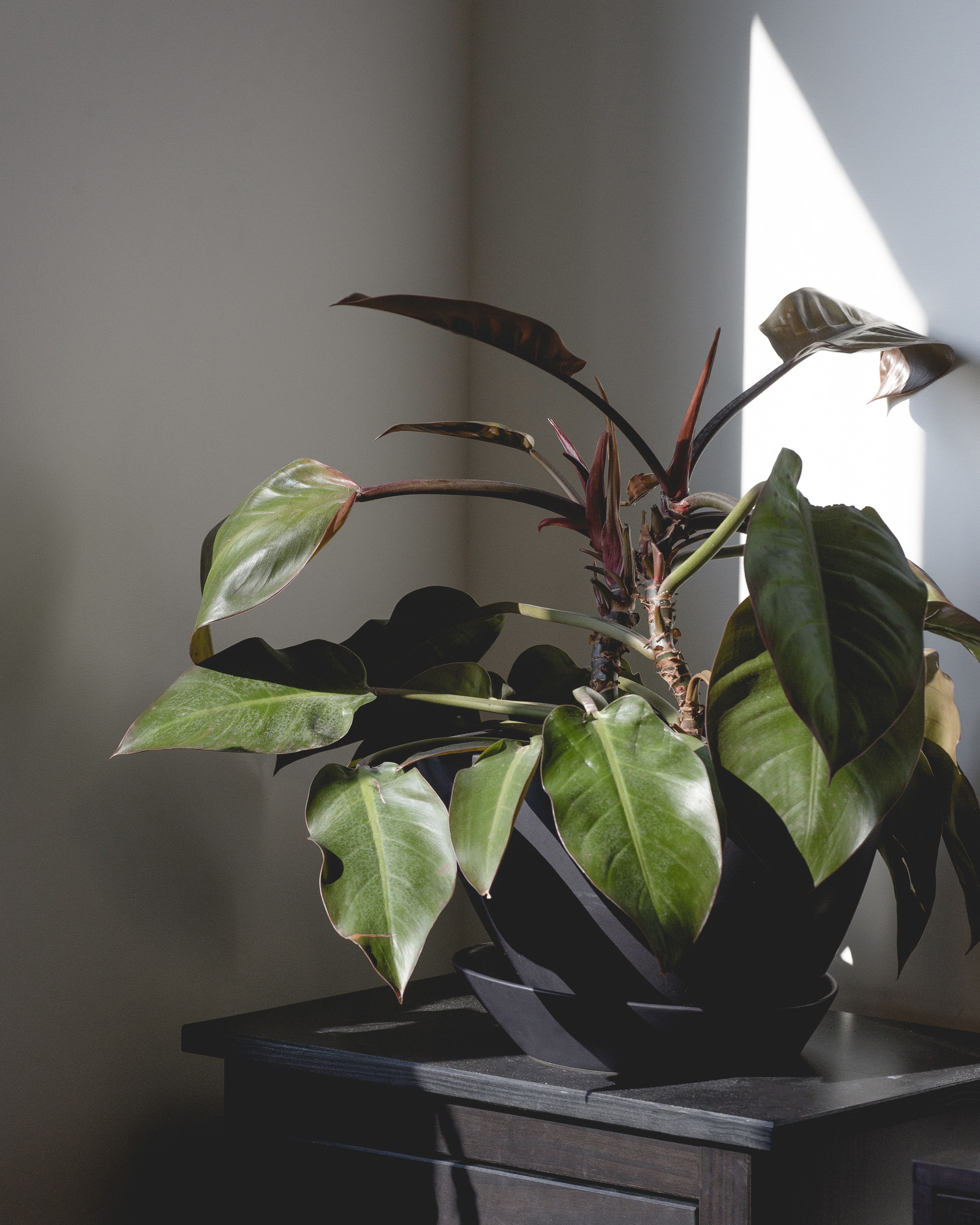 Once she got past the fact that I had been in the neighborhood for two years without a prior visit to her shop, she grabbed an imperial red philodendron from the counter and handed him to me. “Bright indirect sunlight. Let him dry out completely before you water. Repot him in a year. Also, name him. He’s alive, just like you.” That was the day I took Earl home and decided I would end my string of serial plant killings once and for all.