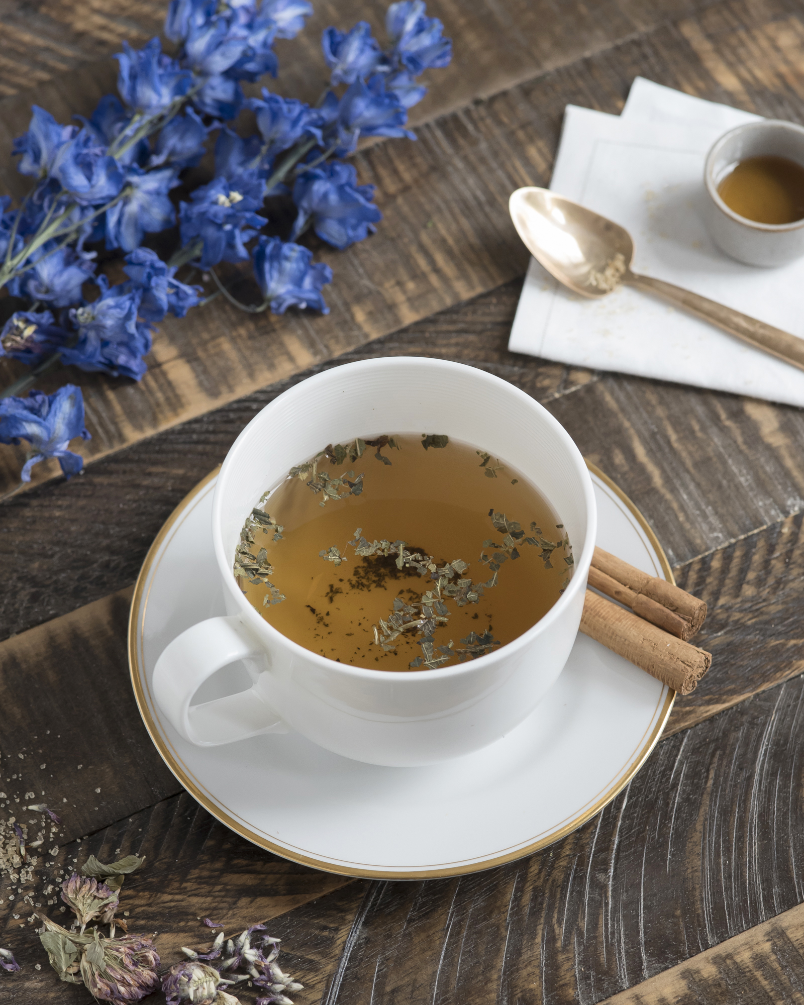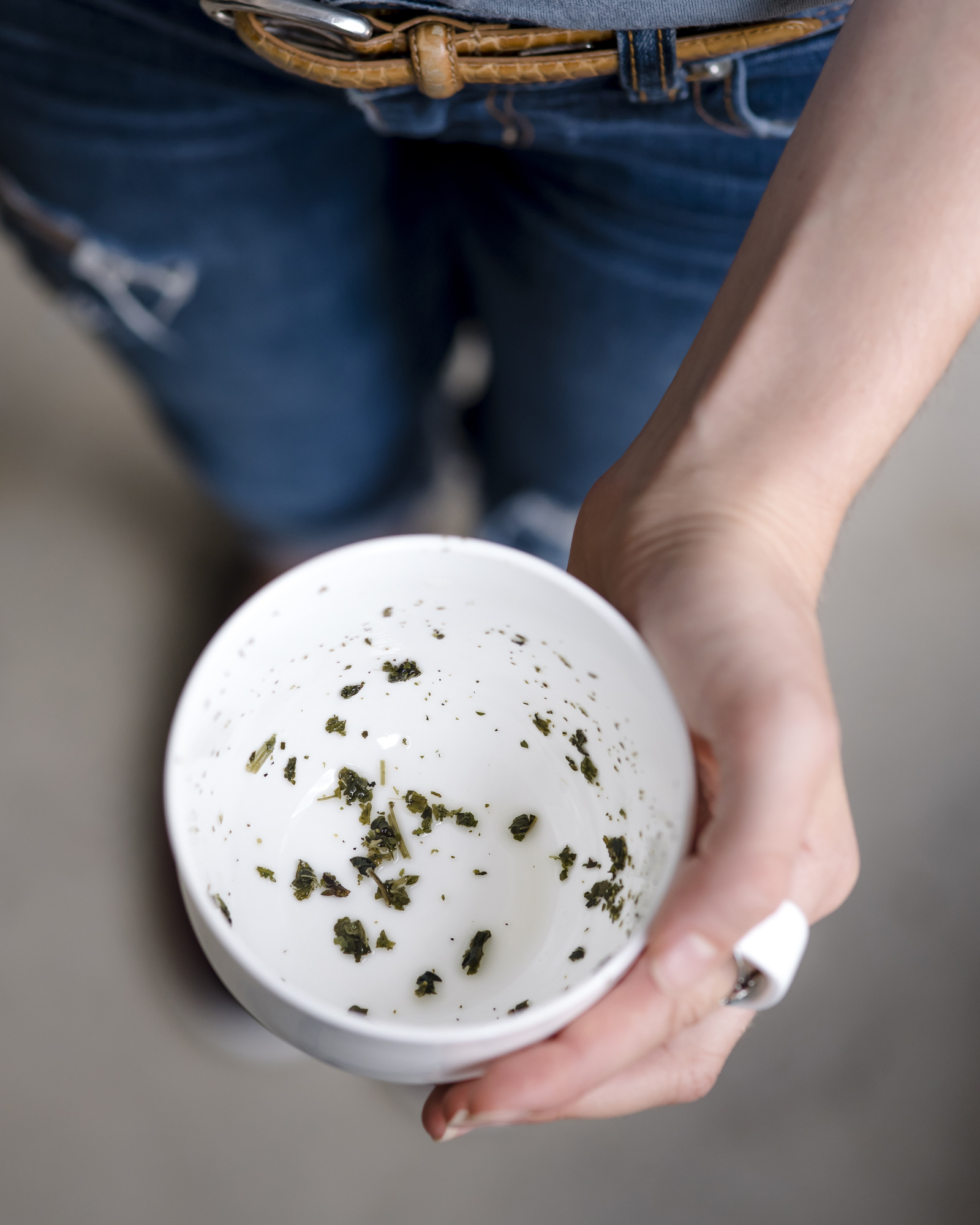 While thinking of a question they would like answered, the participant should slowly savor the cup of tea, drinking the contents until only about half a teaspoon of liquid remains. They should then take the cup in their left hand and swirl the liquid quickly three times, counter-clockwise, which will wash particles of tea up onto the sides of the cup. Then, they should slowly and carefully turn the cup upside down and set it on top of the saucer for about a minute or so, allowing the excess liquid to drip out of the cup and onto the saucer.
