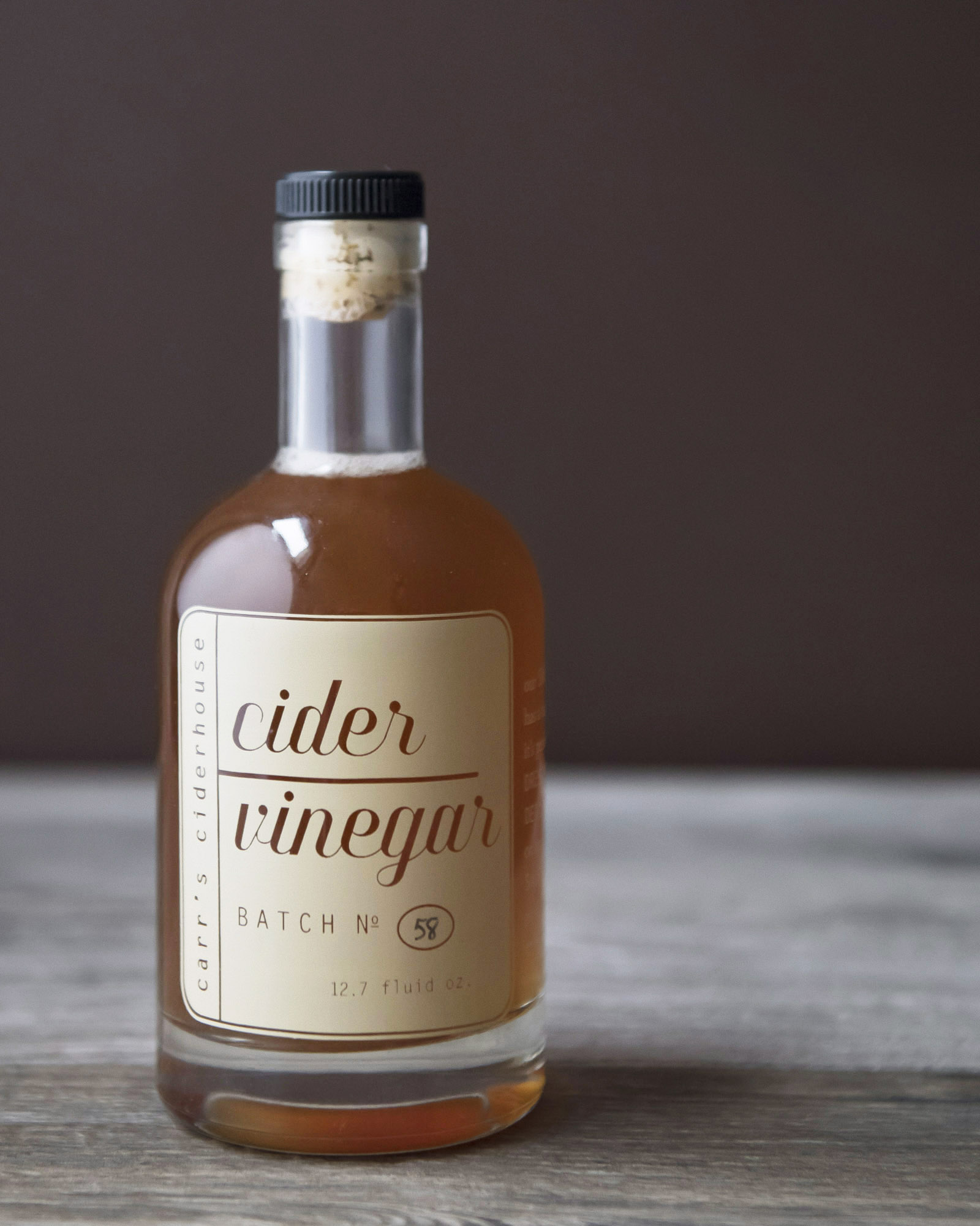 Carr’s Ciderhouse Apple Cider Vinegar is the most beautiful and delicious apple cider vinegar we’ve ever had. Small batch made in Hadley, Massachusetts, the cider’s gorgeous glass bottle and sophisticated label is one that you’ll want to keep on your bookshelf long after the vinegar has been used up– and given that the cider is made from 100% organic juice pressed at Carr’s Ciderhouse, that shouldn’t take long.