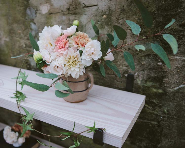 DeWitt collects her flowers from a myriad of places. “A lot of times I’ll forage for branches and other greenery around our property, or around the area that I live in because there’s so much out here that I can use in arrangements and installations,” she says. She also gets her flowers from a wholesaler in Austin as well as a farm five miles away from her house.