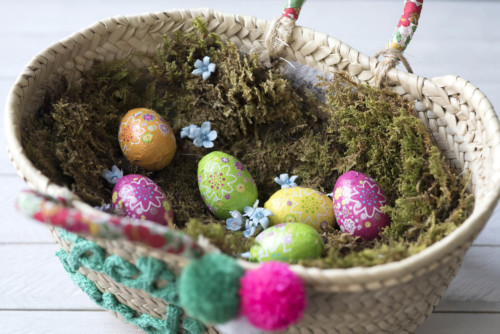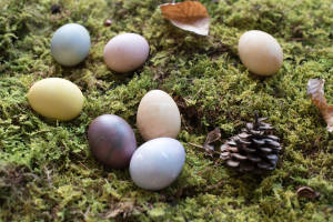 When dyeing, you can try making your own dye from various plant based products you might have in your kitchen, or else you can try picking up a pre-made eco egg dye option. We’re particularly fond of [easyazon_link identifier=”B003EG9U30″ locale=”US” nw=”y” tag=”gardcoll03-20″]Eco Kids kit[/easyazon_link], which comes with a grass growing kit in addition to the dyes.