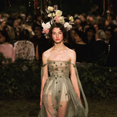 This year, seemingly to honor Pantone’s recently-announced Color of The Year, green was the order of the day. Models metamorphosed into nymphs and floral goddesses floated with grace and elegance along the catwalks in venues transformed into botanical gardens and wild forests. From Viktor & Rolf’s rustic, chimeric nymphs to Valentino’s organic Greek goddesses, many nature-inspired styles dominated the runway. All of them, however, were a world away from the biting cold and pollution-laden air of the city outside. Dior and Jean-Paul Gaultier led the way in this botanical bonanza, which was both ethereal and grounded in a passion for the natural world, even down to the setting of each show.