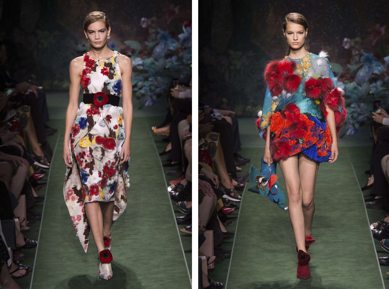 For Fendi, Karl Lagarfeld redefined flower power by transforming the theatre of the Champs Elysees into an enchanted garden reminiscent of Shakespeare’s A Midsummer Night’s Dream.