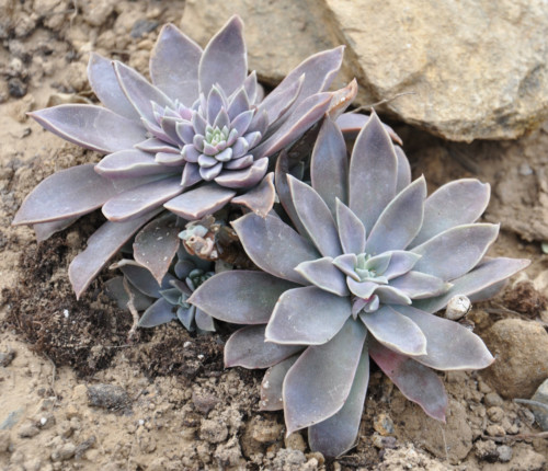 Clumps of small, tight, grayish blue-green stemless rosettes that grow up to 6” tall.