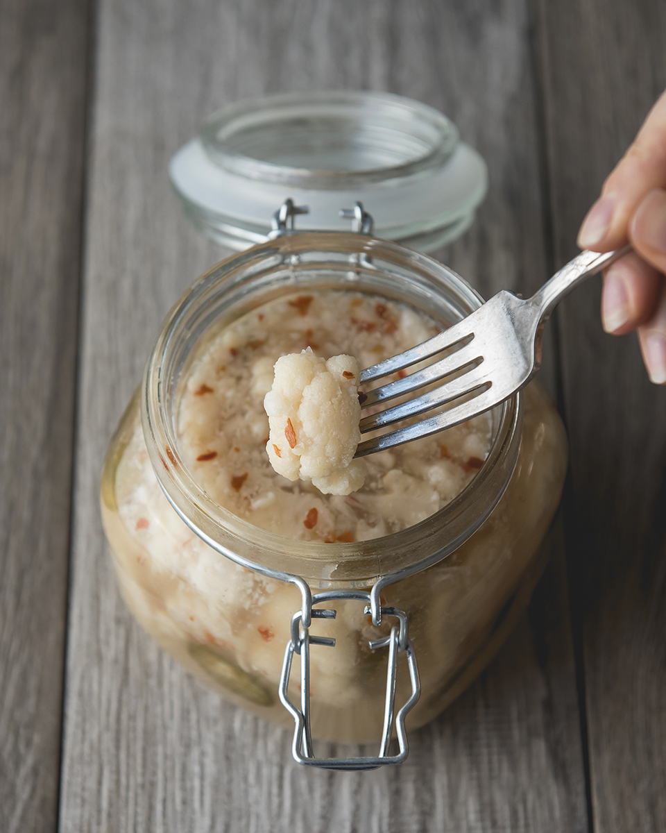 Spicy Pickled Cauliflower with Jalapeño and Radishes