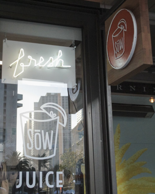 When visiting the Ferry Building in San Francisco, it’s easy to get overwhelmed, especially on farmers market days. The space is home to some of the biggest names in the Northern California food scene: Frog Hollow, Cowgirl Creamery, Acme Bread, and Blue Bottle Coffee. New to the scene– but no less worthy– is Sōw Juice, a juice bar that sources all of its ingredients from organic, California farmers.