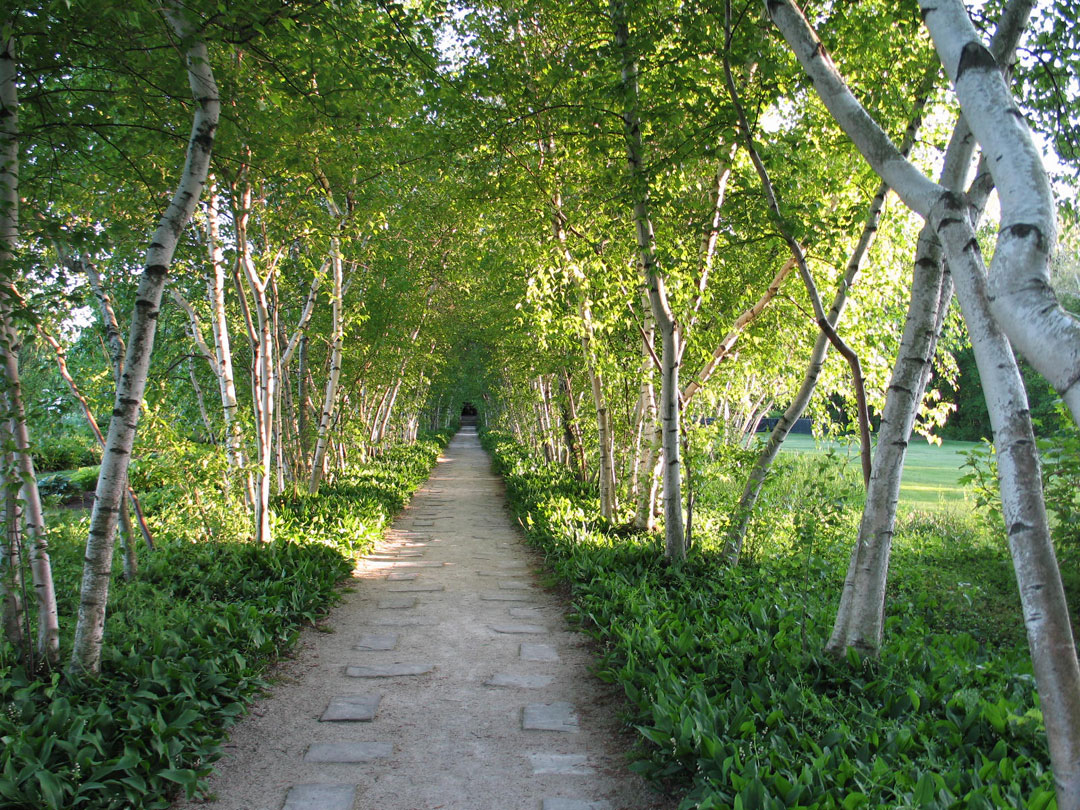 Flanking the South Terrace and offering views of the Great Meadow is the formal London Plane Tree Allée, one of two alleys that act as natural extensions to the long central hallway of the Manor House. The 550-foot long Birch Tree Allée, located on the North side of the house and comprised of 100 gray birches, is lined with vinca and lily of the valley. The path creates an intimate covered walkway from the porch to the Tea Houses, a pair of garden pavilions that overlook the Lagoon and the site of a former sandstone quarry on the west side of the property. (Full disclosure: Like hundreds of other couples, my husband and I had our wedding photos taken at Stan Hywet, and our favorite was snapped at one of the Tea Houses.) The Seiberling’s used the Lagoon for outdoor activities like swimming and fishing; today the estate is the summer home of the Ohio Shakespeare Festival, wherein fans can enjoy the Bard’s plays under the stars. (On my visit, the company was rehearsing The Winter’s Tale, which runs until August 13, 2017.)