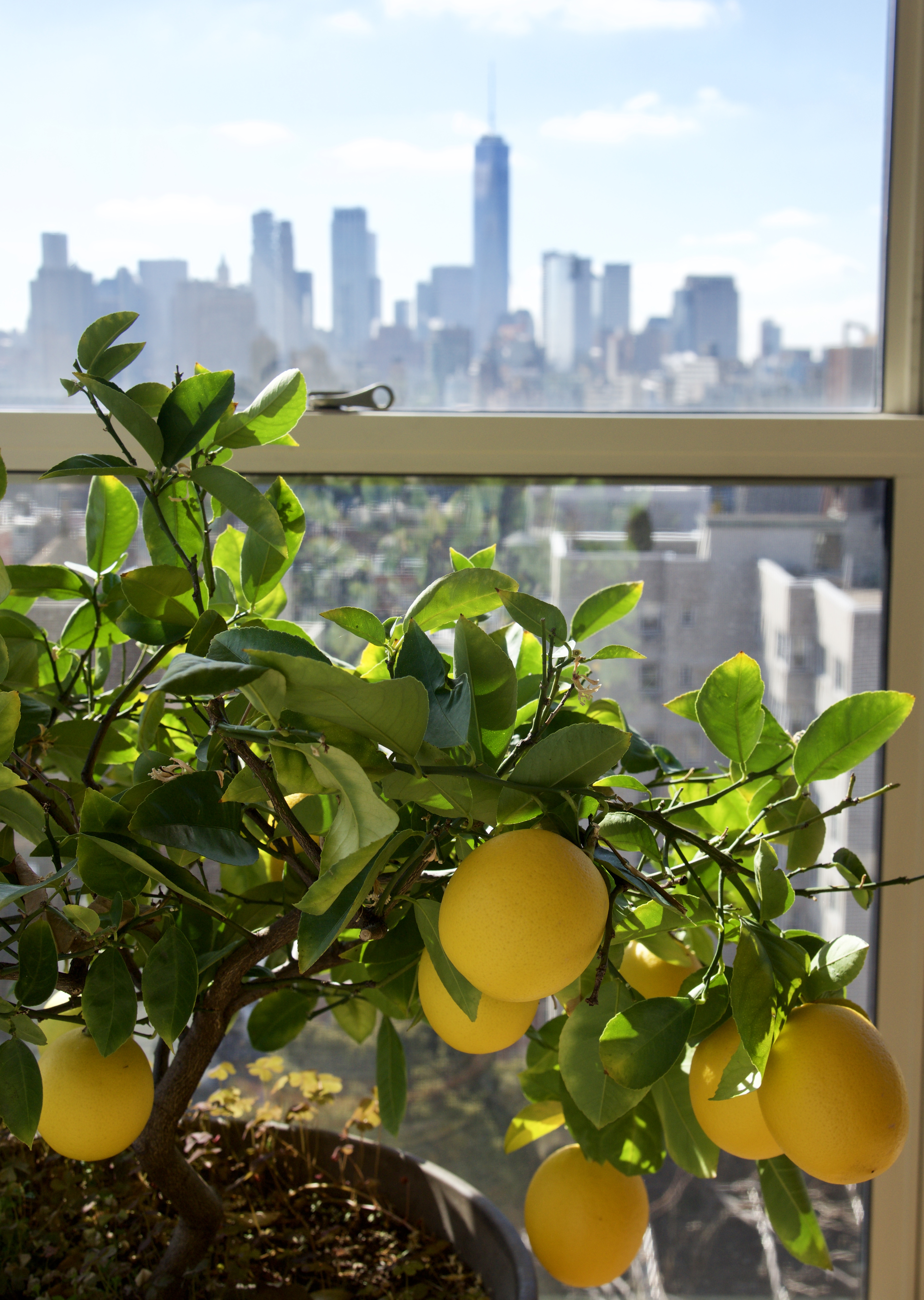 - Sun! Face indoor citrus plants to the south or southeast– like the one we photographed facing downtown Manhattan, above. Citrus needs about 8 hours of sunlight per day, and if they can’t get it, you should invest in [easyazon_link identifier=”B06XR5RGCZ” locale=”US” tag=”gardcoll03-20″] grow lights[/easyazon_link].