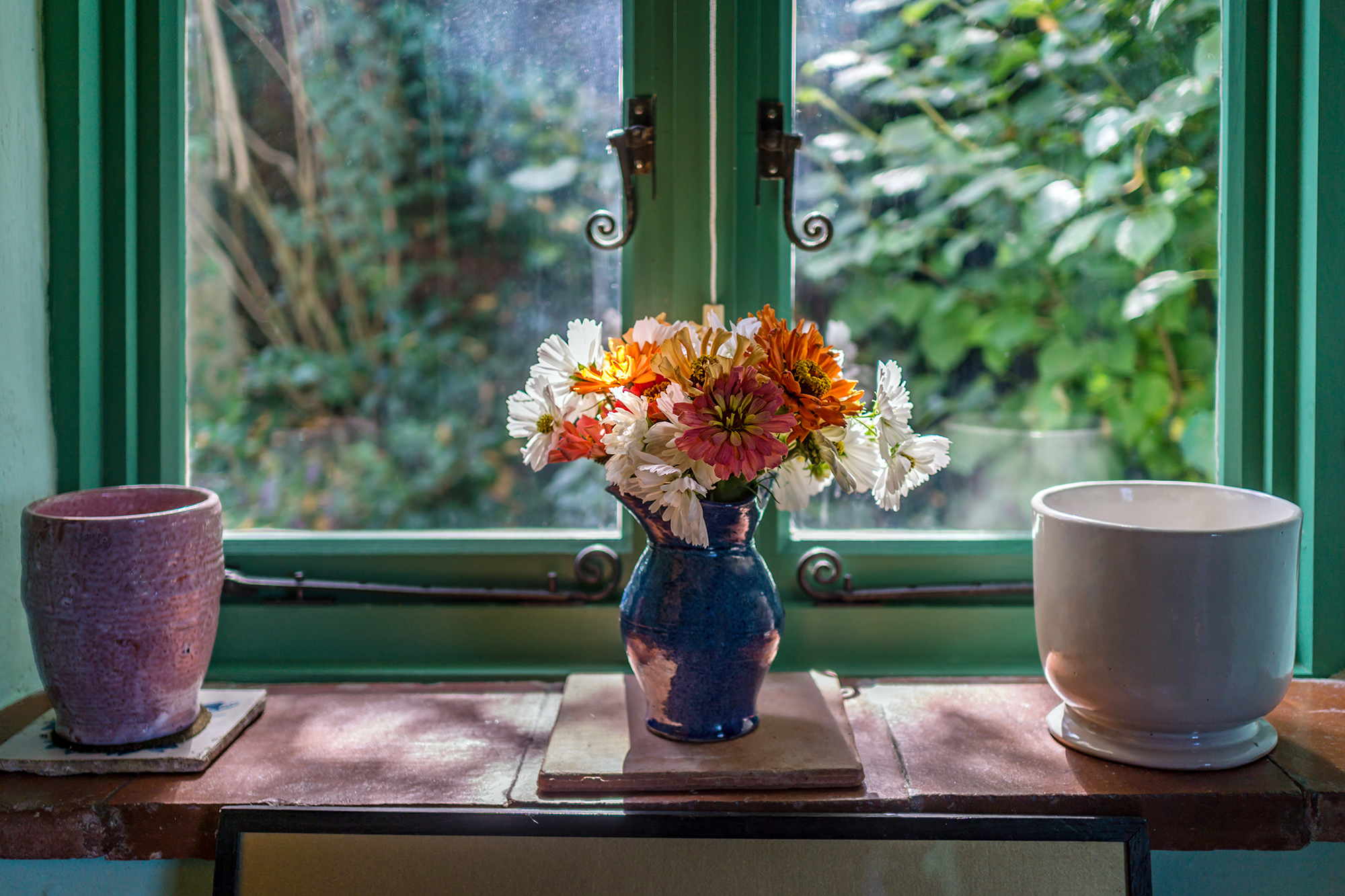 Leonard spent more time working and living in London after Virginia’s death, but a new friendship with another gardening enthusiast, Trekkie Parsons, gave him reasons to expand the gardens at Monk’s House with her help. Both loved exotic plants and filled a cactus house on the grounds. In the 1950’s, Leonard built a conservatory that was attached to the green sitting room. He used the space for seedlings and dahlia cuttings, but also for brightly-colored South African species.