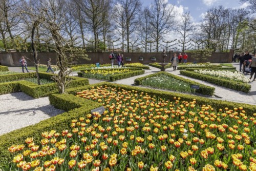 The Flower Parade, which features floats of whimsical creatures created from flowers and costumed paraders which lend a Mardi Gras touch, follows a 25-mile route to Haarlem from Noordwiijk, passing by Keukenhof, on April 22. Last year, Keukenhof’s theme was “Amsterdam’s Golden Age”, because 2016 marked the 400th anniversary of building the Canal Ring, the UNESCO-listed treasure of concentric canals lined by townhouses for wealthy merchants. The 2016 mosaic garden portrayed Amsterdam and its ships back when it was a world trading power.