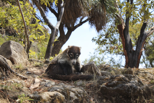 Also to be found at the top of the mountain are coati, a creature from the raccoon family that looks like a cross between a lemur, a fox, and an anteater, with a tall, ringed tail that usually sticks straight up in the air. The coati habitat ranges across Central and northern South American; with influx of visitors at the top of Tepoztlán, the coati have grown quite bold: if you leave your bag on the ground for more than a few seconds, they’re apt to crawl through and dig out anything remotely edible.